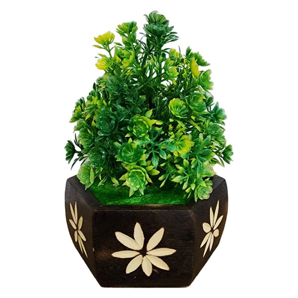 DVMART® Artificial Flower with Hexagon Wooden Pot (Green)