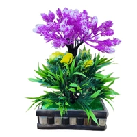 DVMART® Violet Flower with Green Leaf With Rectangle Wooden Pot for Decoration (17x25 CM)