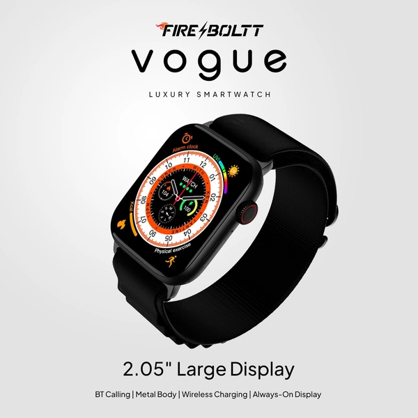 Fire-Boltt Newly Launched Vogue Large 2.05" Display Smart Watch, Always On Display, Wireless Charging